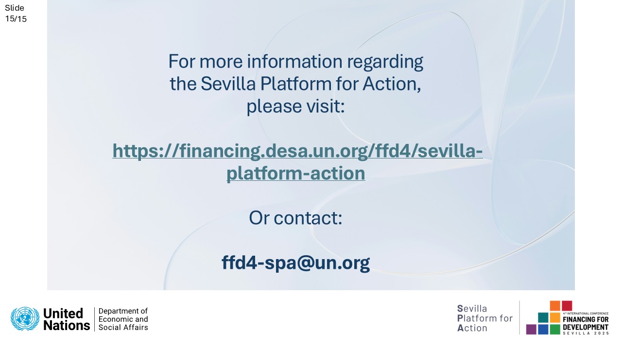 - For more information regarding the SPA, email: ffd4-spa@un.org